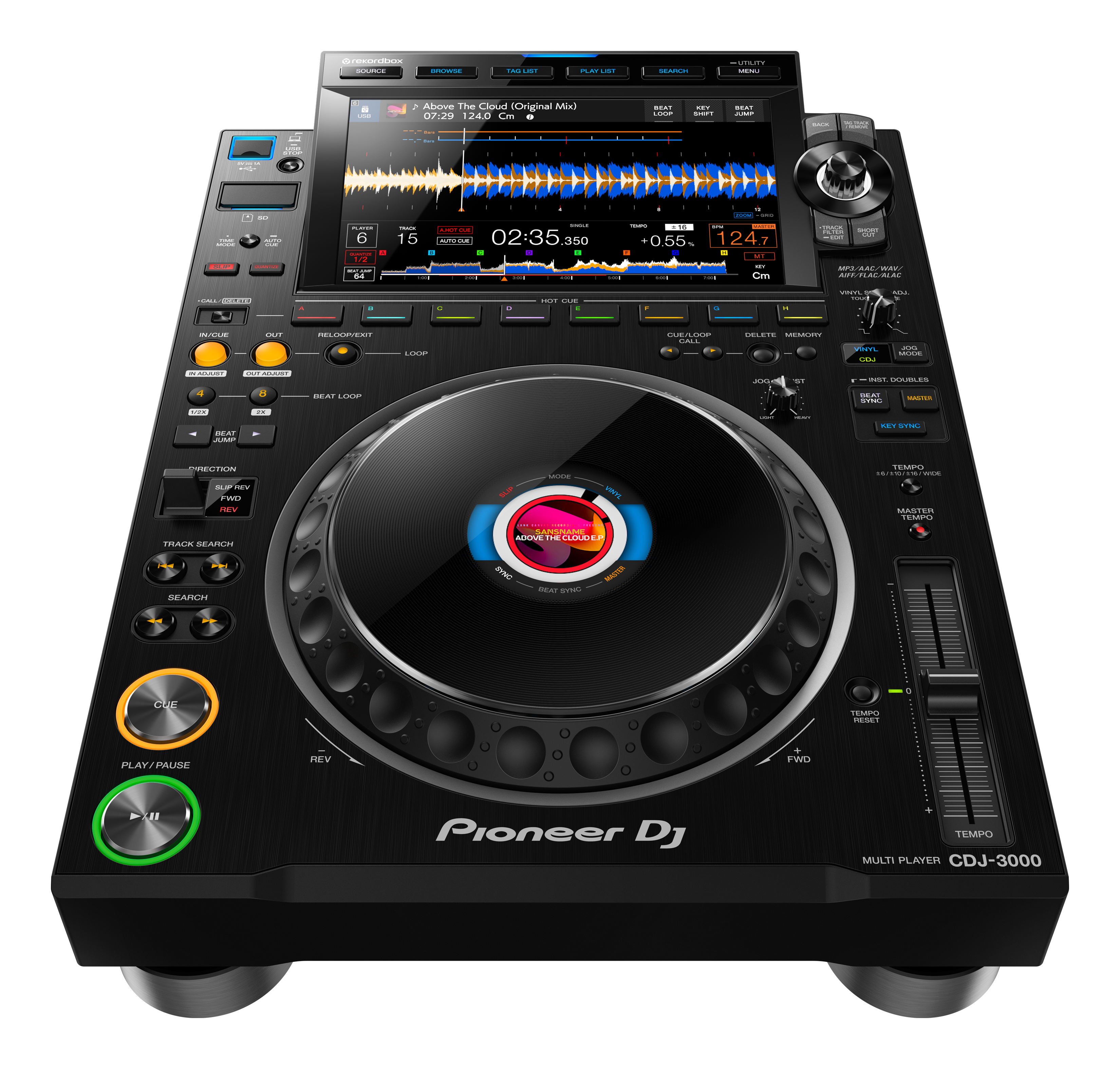 Хотите мгновенно показать свое мастерство и создать новую музыку? Воспользуйтесь улучшенной моделью CDJ-3000, которая работает словно музыкальный инструмент. Восемь клавиш Hot Cue – — в два раза больше, чем в проигрывателе CDJ-2000NXS2 –, размещены слева направо под дисплеем форм волны для более интуитивного управления. Используйте функцию Beat Jump на новых клавишах и нажмите кнопку синхронизации для гармоничного микширования. С помощью новой кнопки 8-битного лупа, которая дополняет классический функционал 4-битного управления, можно создавать более широкий диапазон лупов.