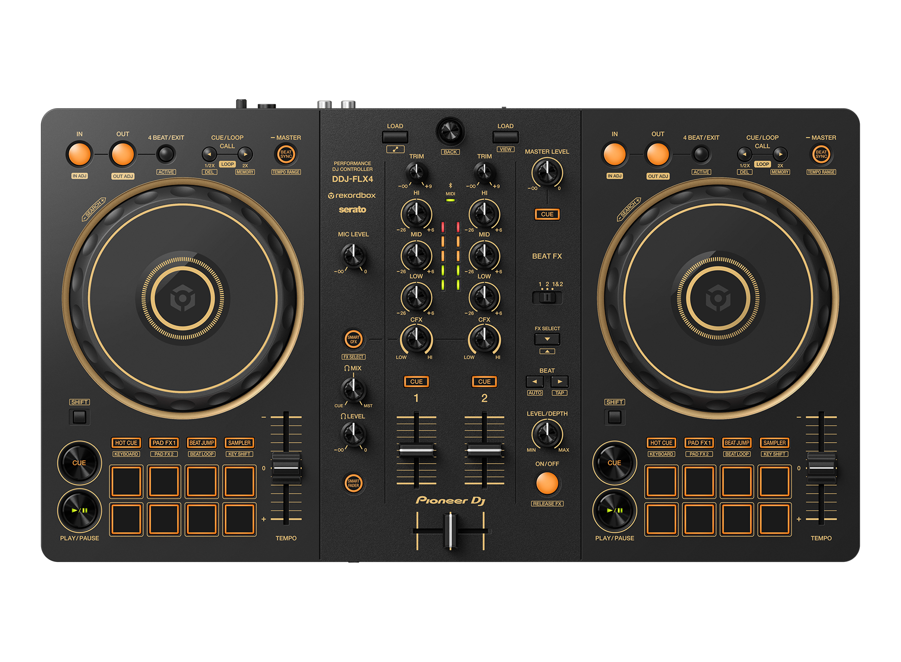 The layout of the controls on the DDJ-FLX4 makes it easy to learn to DJ and is inherited from professional Pioneer DJ products. Everything is simple to use and neatly arranged, which also makes the controller compact enough to take anywhere you want to practice or perform.