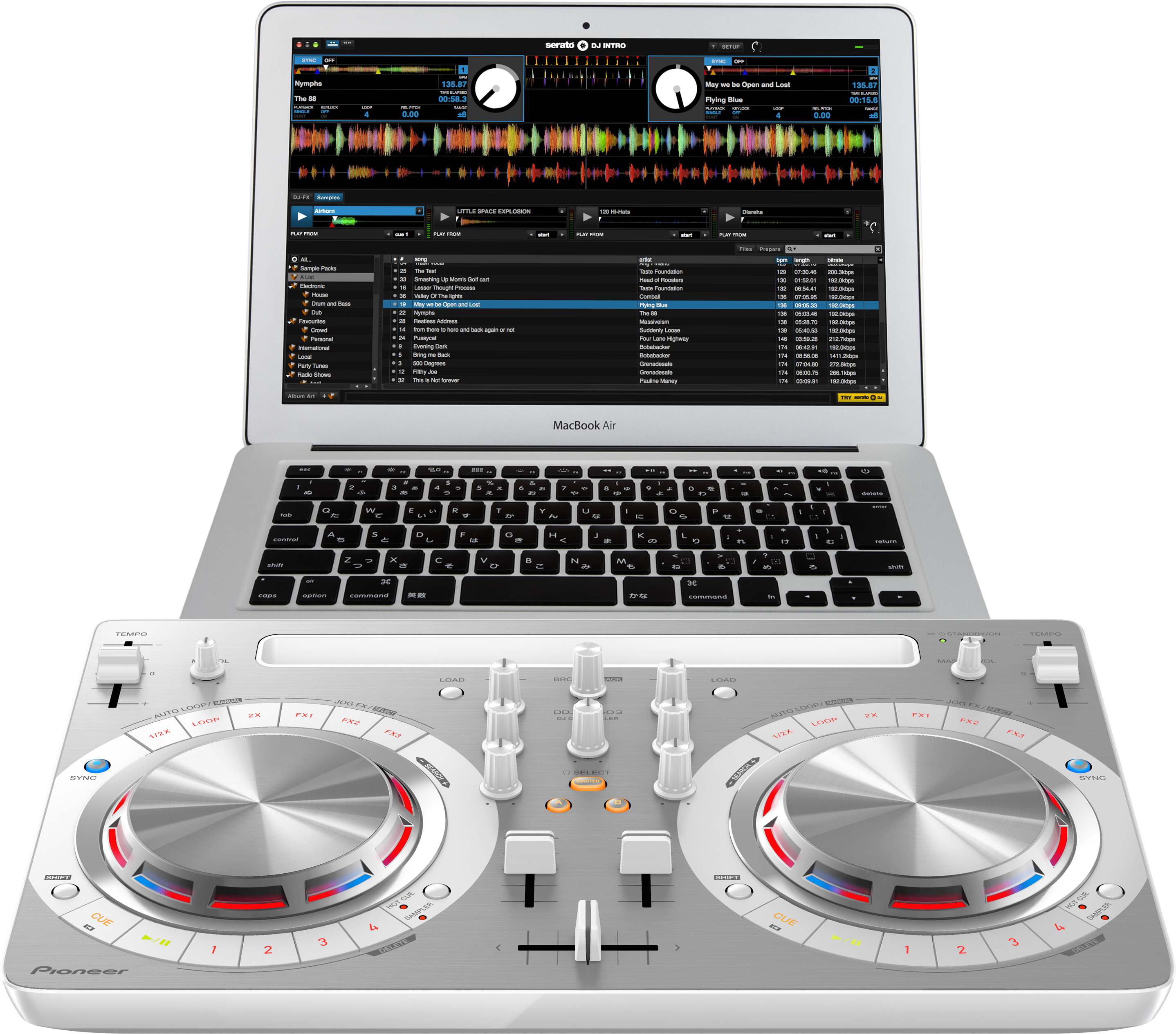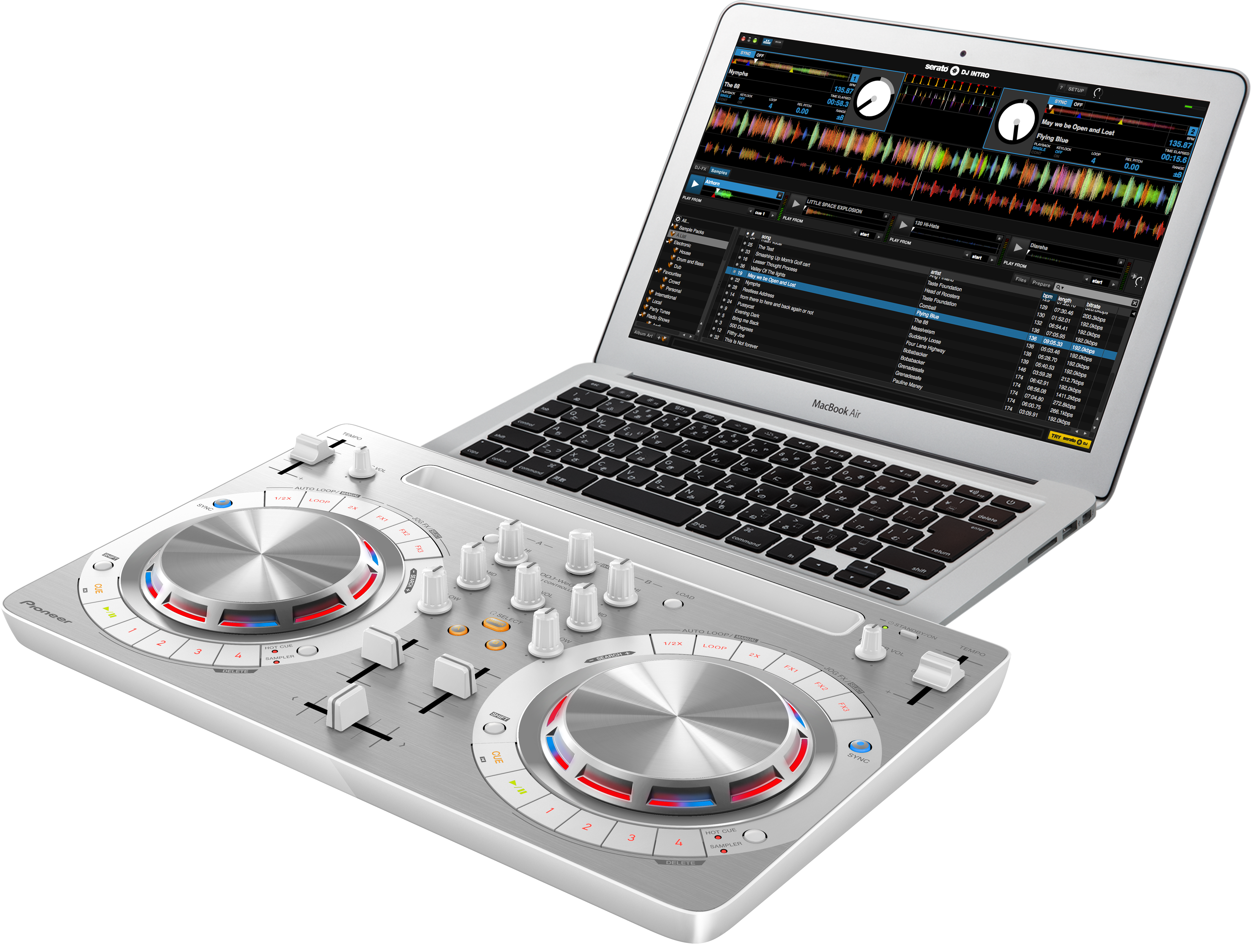 Скачайте Serato DJ Lite, подключите контроллер к вашему компьютеру и начните играть. Используйте программу для организации музыкальной библиотеки или интеграции треков из iTunes. Просто перетяните трек в деку, установите точки, петли и семплы и используйте эффекты.