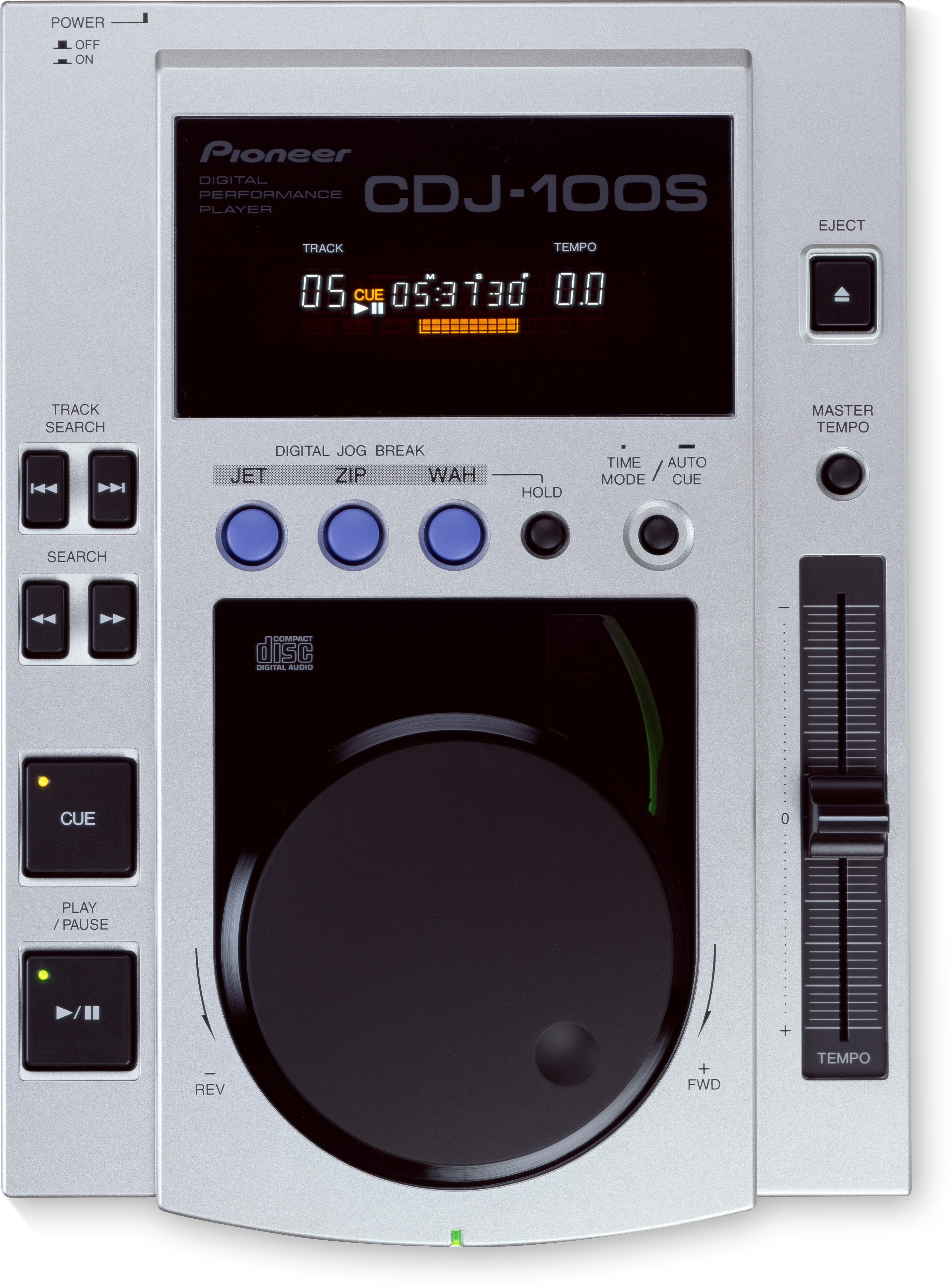 CDJ-100S имеет функцию Digital Jog Break, которая предлагает три различные вариации. Джог позволяет подгонять скорость треков и точно настраивать точки cue.