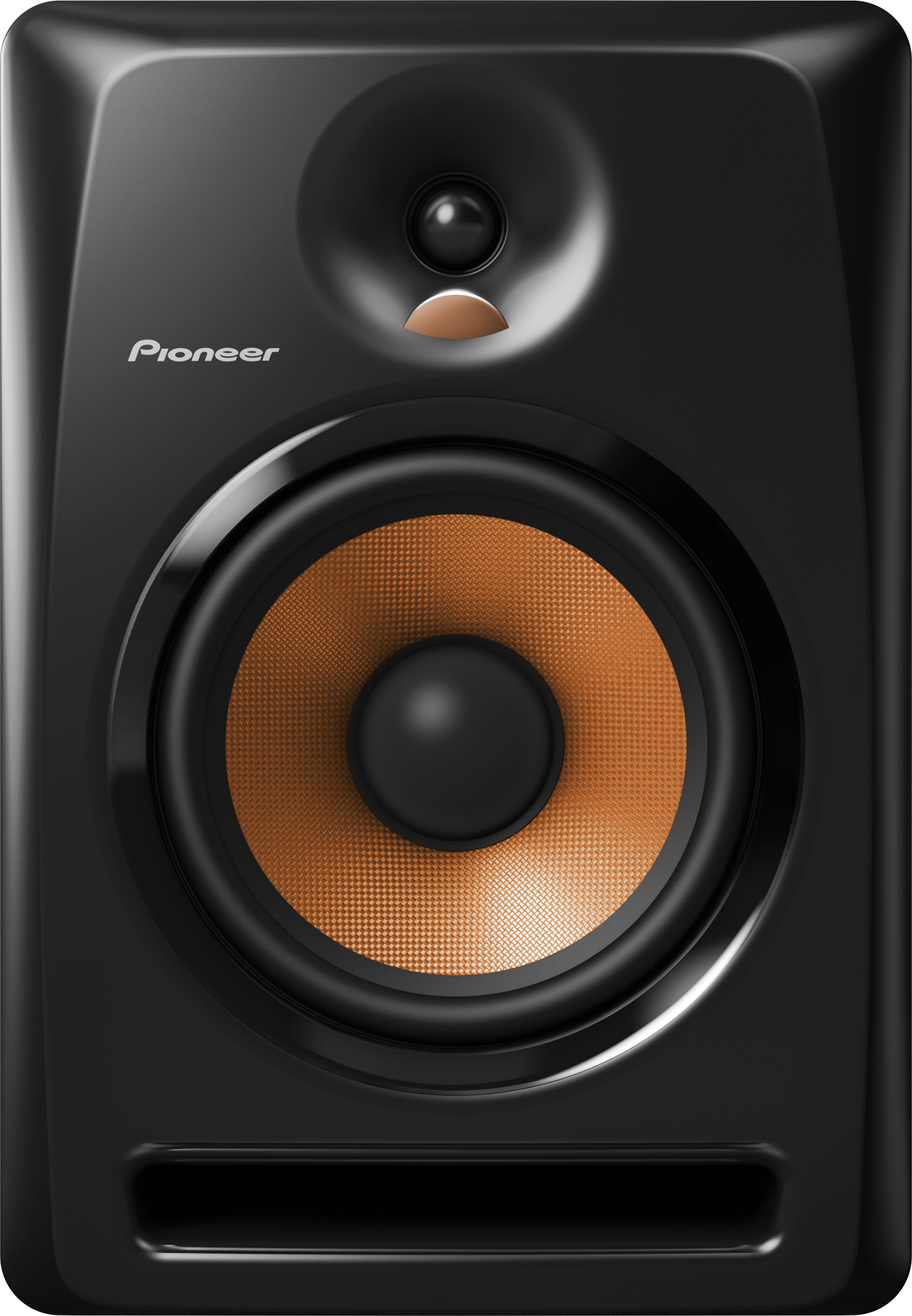Matching the bass output of the speakers, the soft dome tweeters are set in the center of a convex diffuser optimizing output and dispersing the sound energy in both left and right directions for wider imaging. For a cool cosmetic look, the diffuser illuminates in white when the speakers are powered on.